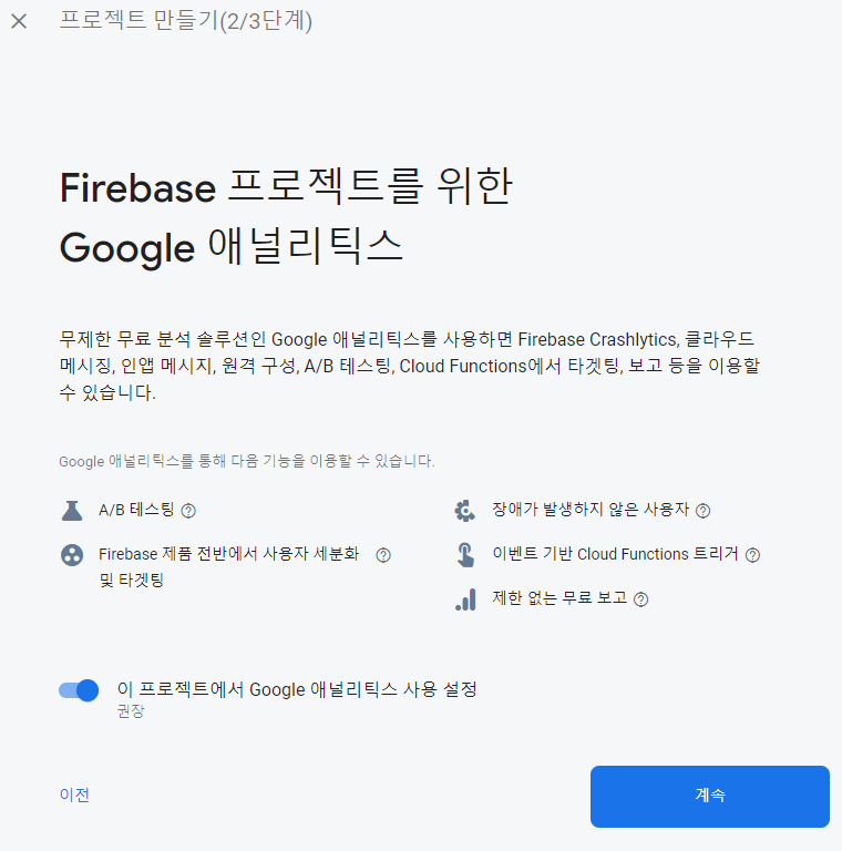 Firebase는 총 3단계로 이루어져 있습니다. 순서대로 차근차근 입력하시면 됩니다.